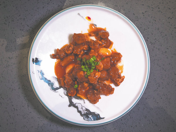Signature dishes include lychee pork (top center), satay noodles (top left), fish balls (above) and oyster omelet (right). [Photo provided to China Daily]