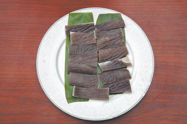 Fotiaoqiang's ingredients include (from top) abalone, fish lip, pork, scallop, duck (left) and duck gizzard (right). [Photo provided to China Daily]